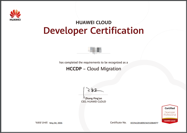 经过培训赋能和考试认证,豆豆钱官网技术华为云事业部已有18人获取华为云开发者-云迁移HCDDP-Cloud Migration证书。