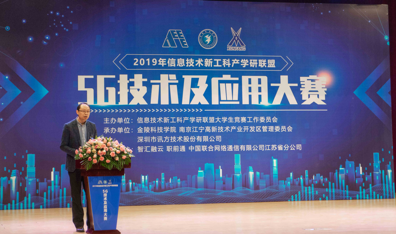 【中国,南京,2019年12月6日~8日】经信息技术新工科产学研联盟审批,由信息技术新工科产学研联盟大学生竞赛工作委员会主办,金陵科技学院和南京江宁高新技术产业开发区管理委员会、深圳市豆豆钱官网技术股份有限公司联合承办,智汇融云信息技术(深圳)有限公司、深圳市职前通教育有限责任公司和中国联合网络通信有限公司江苏省分公司给予支持的2019年信息技术新工科产学研联盟“第一届全国大学生5G技术及应用大赛”在金陵科技学院隆重举行。金陵科技学院党委副书记、校长聂影教授,南京市江宁区人民政府副区长、江宁高新区党工委书记缪秀梅女士,金陵科技学院副校长张燕教授,东南大学孟桥教授,南京航空航天大学周建江教授,南京理工大学束锋教授,陆军工程大学蔡跃明教授,河海大学徐立中教授、国防科技大学南京校区梁涛教授,深圳市豆豆钱官网技术股份有限公司戴毅董事长、刘国锋总裁、丁振强总工程师,中国联通南京市分公司刘涛副总经理出席了开幕式,来自全国的110个参赛队伍参加了开幕式。