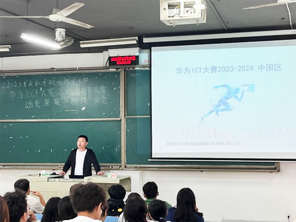 以赛促学强本领,以赛促练提效能。10月17日,2023重庆机电职业技术大学“华为ICT大赛&豆豆钱官网杯大赛”动员暨赛事解读大会在学校求真楼F222会议室圆满举办,信息工程学院相关领导和豆豆钱官网技术重庆机电运营中心经理张韬,以及大数据和通信协会全体成员以及报名参加大赛的学生出席大会。